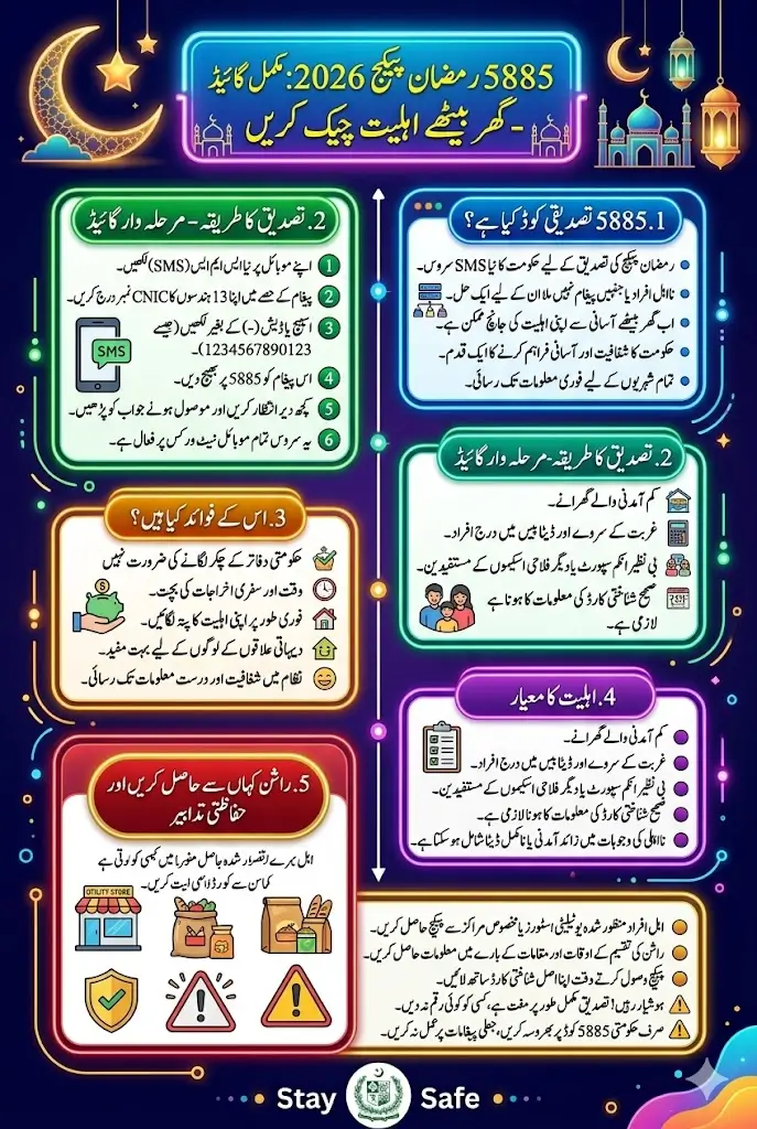 The introduction of the 5885 Ramzan Package verification code is a positive step toward making government relief programs easier and more transparent for the public. Instead of visiting offices repeatedly or waiting for official messages, citizens can now verify their eligibility within seconds using a simple SMS service.