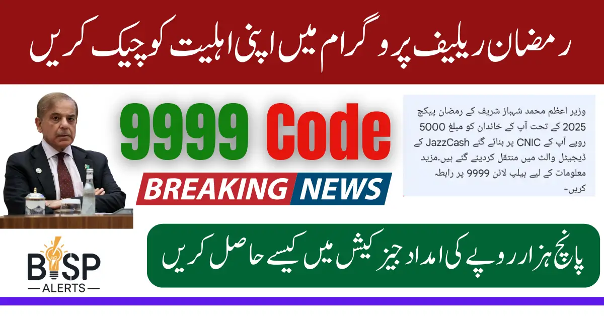 9999 Code For PM Ramzan Package Government of Pakistan, under the leadership of Prime Minister Mian Muhammad Shahbaz Sharif, has launched the 9999 Online Check CNIC Pakistan initiative. This program aims to provide financial assistance of Rs 5,000 to deserving families across Punjab and other provinces during Ramadan 2025.