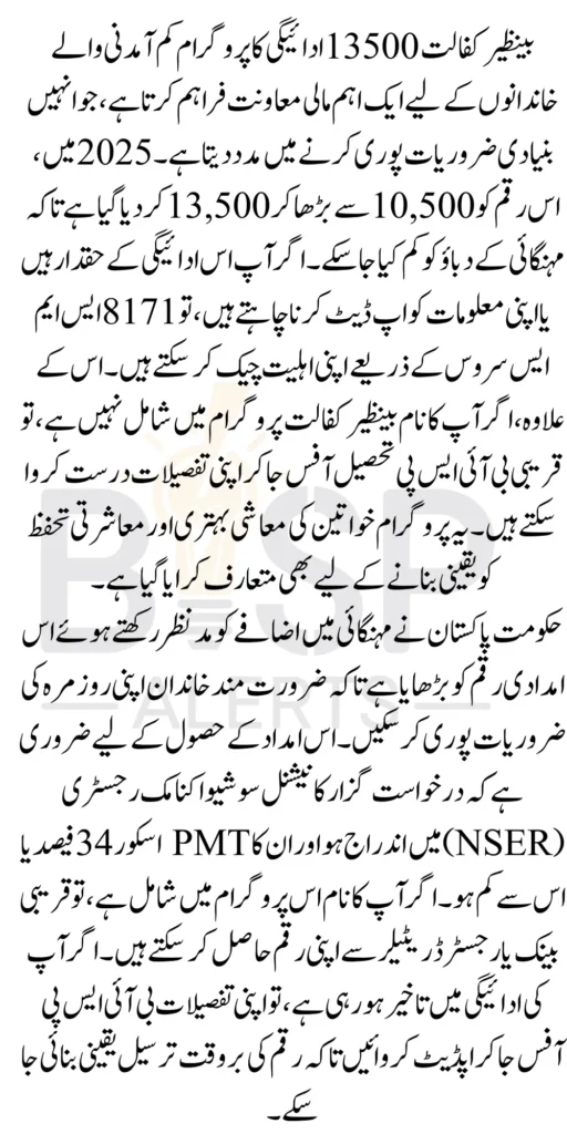 The increase in payments from 10500 to 13500 in 2025 is an important step to help families keep up with the rising cost of living. The Government of Pakistan acknowledged that inflation has significantly affected lower-income groups, and this increased financial aid will help families meet their daily needs, buy essentials, and reduce their financial burden.