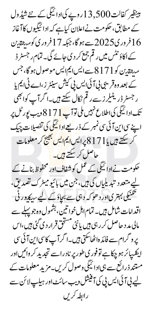Benazir Kafalat 13500 Payment Distribution Schedule government has recently announced an important update regarding the Benazir Kafalat 13500 Payment Distribution Schedule for February 2025. If you are a beneficiary waiting for your payment, this article will guide you through the latest changes, payment methods, and how you can receive your stipend without any issues.