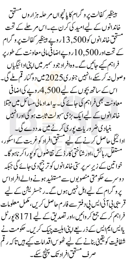 The Benazir Kafalat Phase 5 payments play a vital role in improving the socio-economic conditions of underprivileged families.