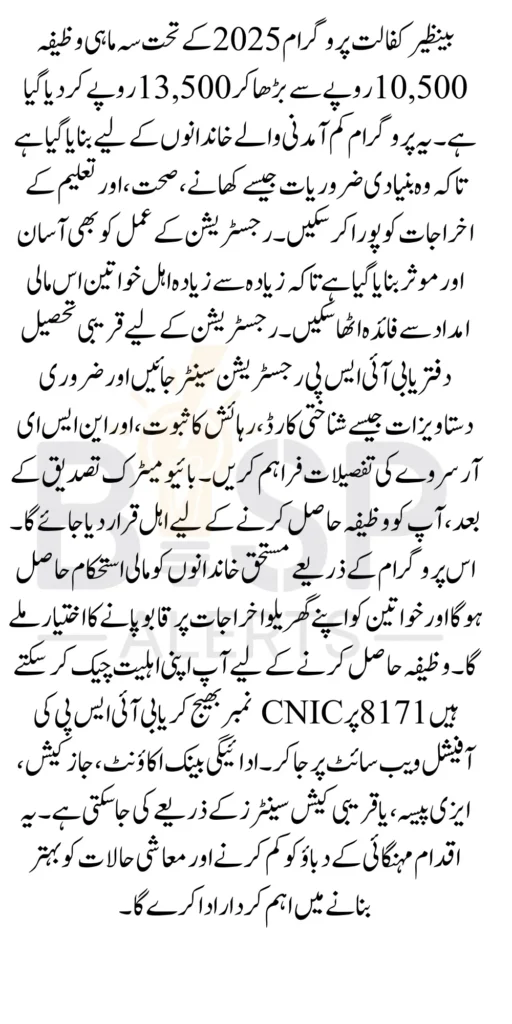 You Can Also Read: Benazir Kafalat Program Payment Details 2025 Who Can Enroll For 13500