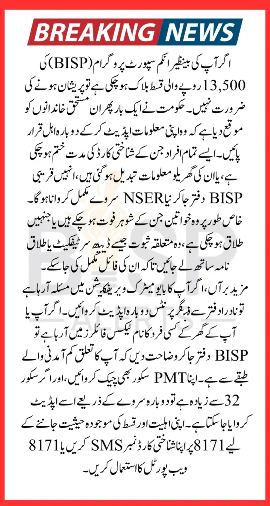 The reactivation of BISP 13500 blocked accounts has begun in 2025, and it’s important to take timely action. Whether it’s a CNIC issue, biometric failure, or household survey problem, solutions are available. Just follow the correct steps, stay connected with official BISP channels, and make sure your information is accurate and up to date.