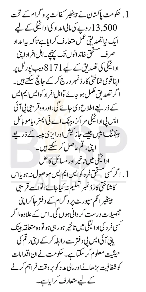 - Payment Delays: If your payment has not been received on time, check with the bank or BISP office to confirm your payment status and resolve any pending issues.