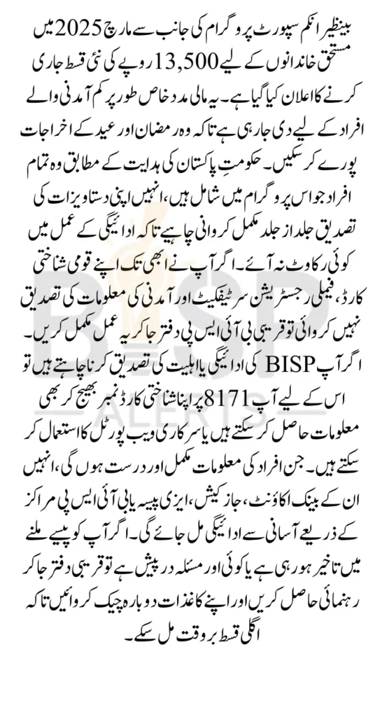 March 2025 BISP Payment Update: New Installment of 13500