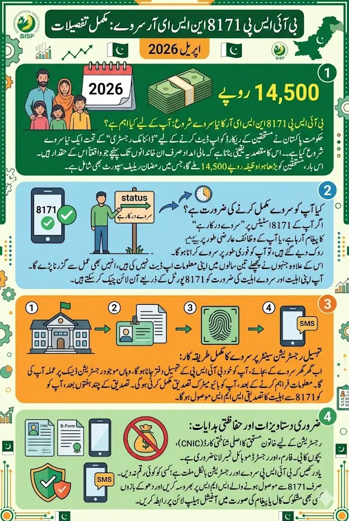 The launch of the BISP 8171 NSER Survey for April 2026 marks an important step toward improving transparency and fairness in Pakistan’s largest social welfare program. By updating beneficiary records through the Dynamic Registry system, the government aims to ensure that financial assistance reaches families who truly need support.