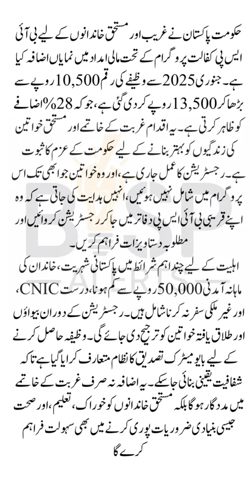 The BISP Kafalat stipend increase to 13500 in January 2025 marks a transformative step for poor and deserving families across Pakistan. With ongoing registration and transparent payment systems, the government ensures that financial assistance reaches those who need it most.