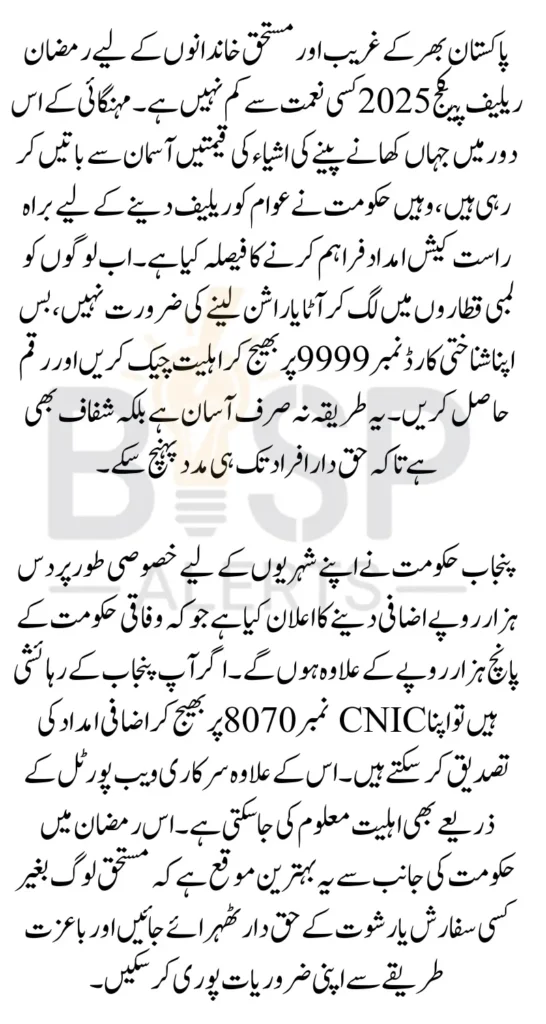 9999 Ramzan Relief Package Government of Pakistan has launched the 9999 Ramzan Relief Package 2026 to provide timely financial support to millions of families during the holy month of Ramadan. With inflation at an all-time high, this initiative aims to help low-income households by offering direct cash assistance instead of traditional ration bags. Through this guide, you will learn how to check your eligibility and status easily through SMS and online portals without any hassle.