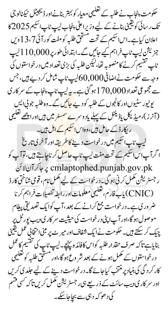 - Application Portal: cmlaptophed.punjab.gov.pk