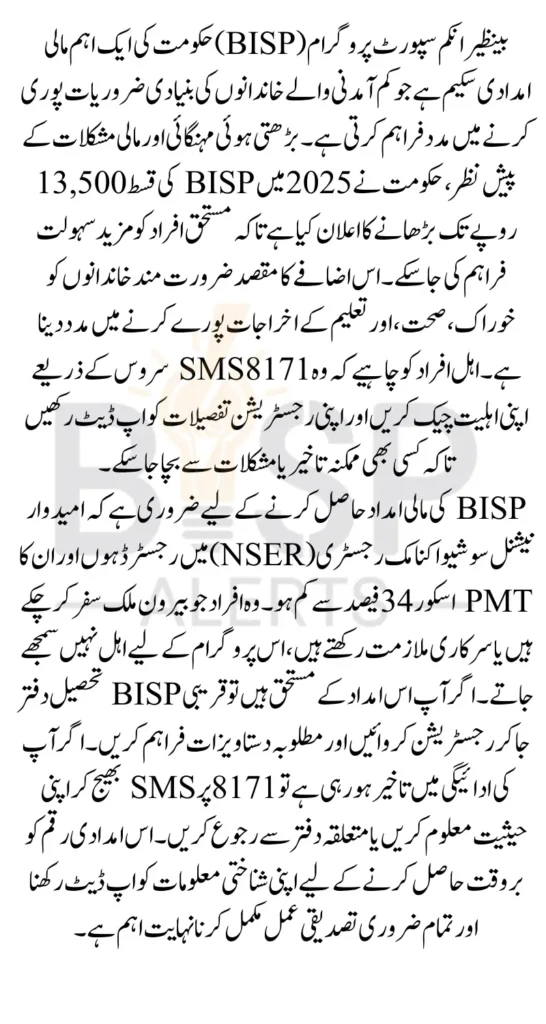 Eligibility Criteria for 8171 BISP 13500 Payment