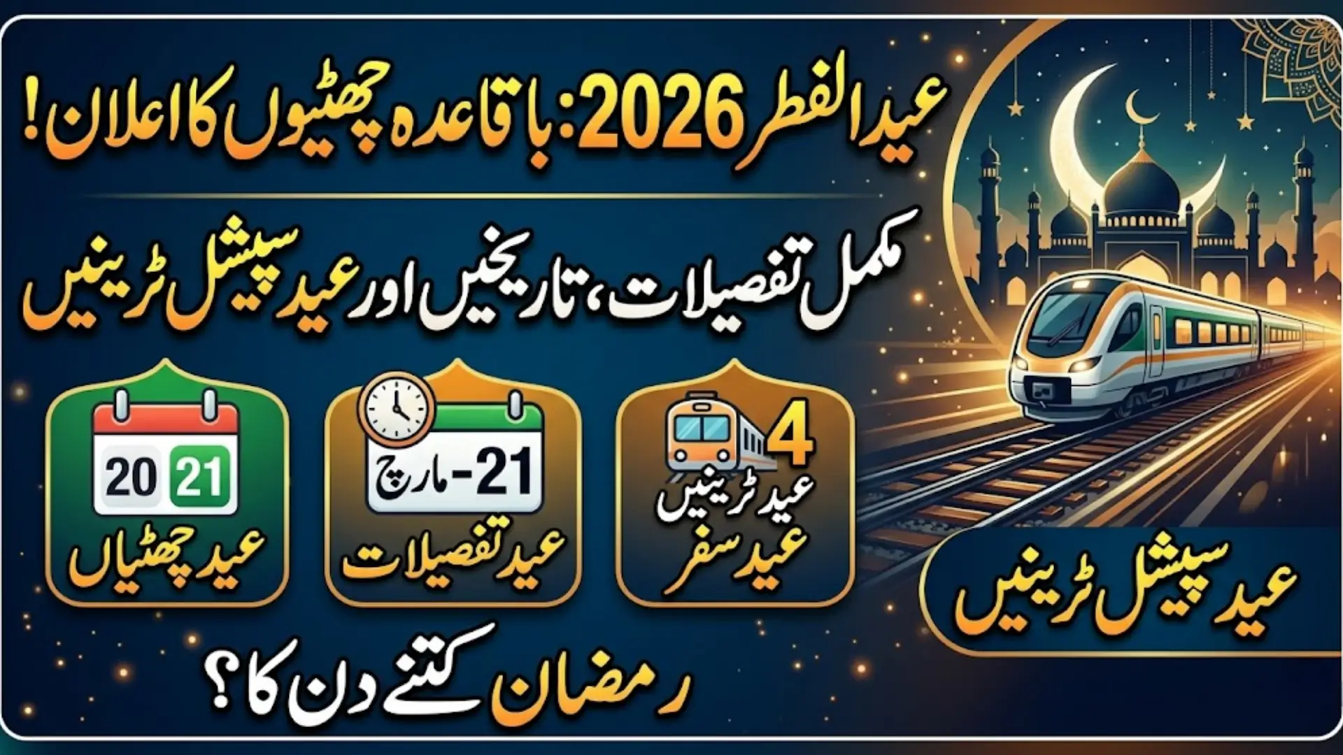 Experts expect Eid to fall on March 21, although the final announcement will be made by the Central Ruet-e-Hilal Committee after moon sighting. Meanwhile, Pakistan Railways has also introduced special trains to facilitate passengers traveling during the festive season.