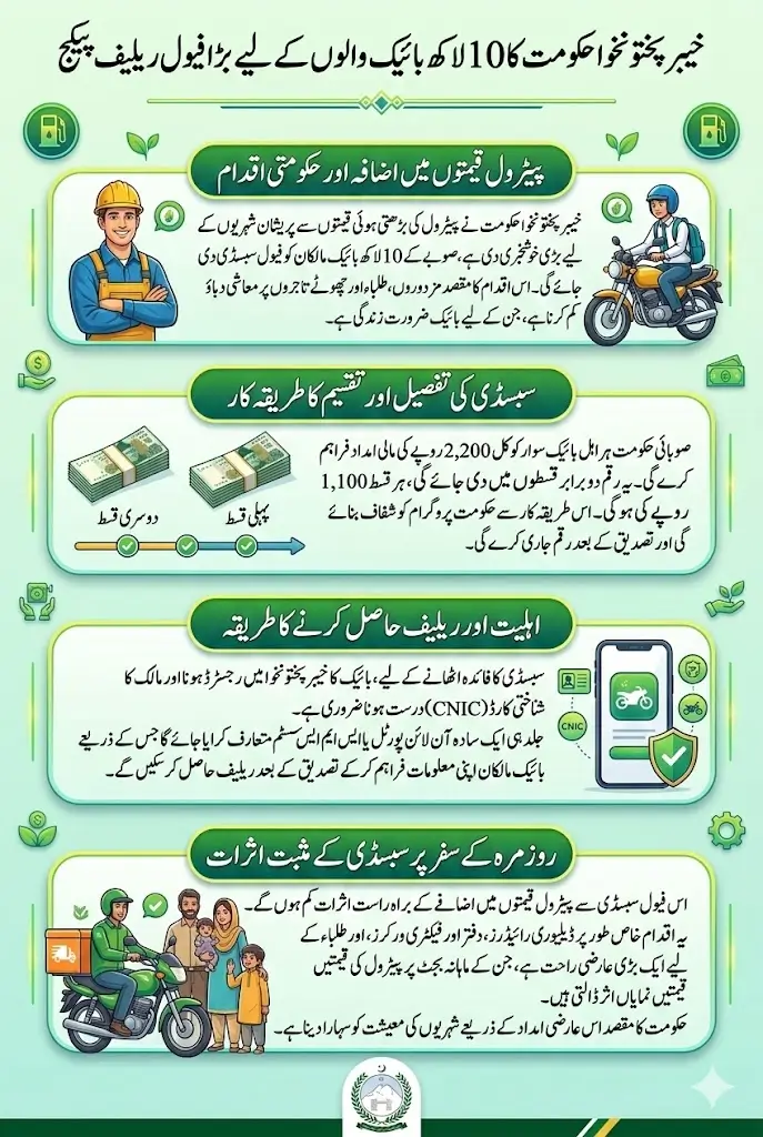 KPK GovT Announces Subsidy For 1 Million Khyber Pakhtunkhwa government has announced a fuel subsidy for motorcycle owners to help citizens deal with the rising cost of petrol. In recent weeks, fuel prices have increased sharply across Pakistan, which has created serious financial pressure for people who rely on motorcycles for daily travel. For many workers, students, and small business owners, motorcycles are not a luxury but a necessity.