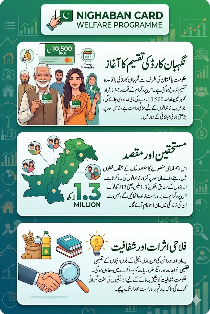 Nighaban Card Distribution Launch launch of the Nighaban Card distribution marks an important step in providing financial support to vulnerable citizens in Pakistan. With quarterly payments of Rs10,500, the programme aims to help families manage essential expenses during challenging economic conditions.