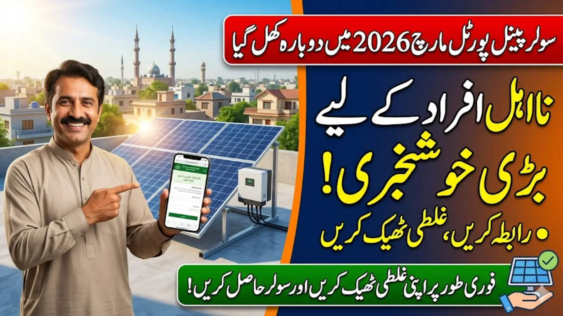 In March 2026, the government reopened the solar portal to give another opportunity to people who were previously declared ineligible. Thousands of applicants were unable to qualify earlier due to incomplete details, incorrect information, or verification issues. By reopening the portal, the authorities have created a second chance for these households to update their information and apply again for the solar panel scheme.
