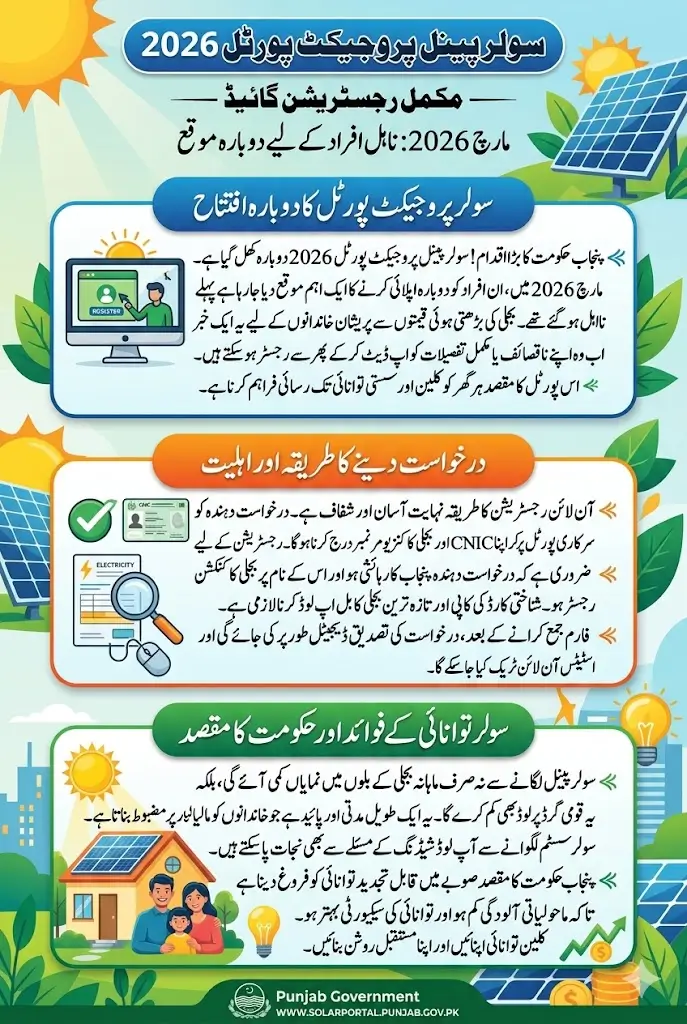 This article provides a complete and easy-to-understand guide for Pakistani citizens about the Solar Panel Project Portal reopening, how to apply, eligibility conditions, benefits of solar energy, and important tips for successful registration.